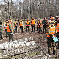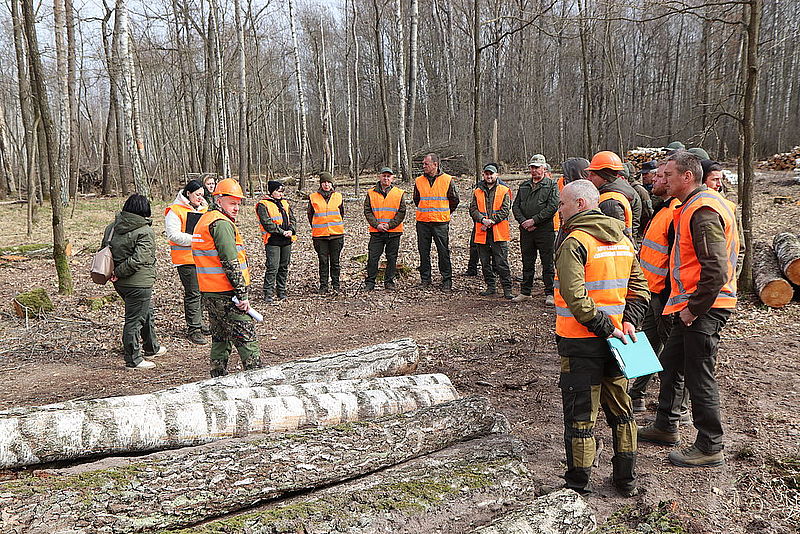 Директор ДП «Звягельський лісгосп АПК» Сергій Яремчук провів виїзну нараду на лісовій ділянці в Городницькому лісництві, де безпосередньо проводяться роботи із заготівлі деревини. Такий формат роботи дав змогу не лише обговорити актуальні питання, а й об’єктивно оцінити стан справ на місці. Участь у нараді взяли головні спеціалісти підприємства, лісничі, їхні помічники, а також старші майстри та майстри лісу Городницького і Звягельського лісництв. У центрі уваги – практичні аспекти щоденної роботи: організація заготівлі лісопродукції, якість і своєчасність зачищення лісосік після проведення рубок, дотримання технологічних і виробничих вимог. Особлива увага приділялась контролю за дотриманням правил безпеки праці та ефективному використанню наявної техніки й ресурсів. Окремо обговорили роботу майстрів лісу з КПК, які маркують деревину та вносять в систему електронного обліку деревини дані про її рух. Такий виїзний формат вкотре підтвердив: найефективніші рішення народжуються там, де їх одразу можна перевірити на практиці.